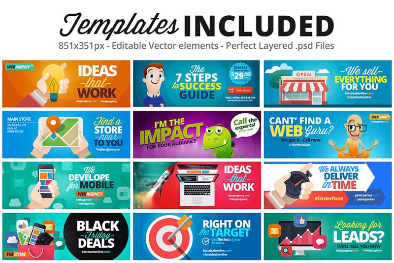 This Mega Bundle contains 12 Facebook cover Templates, each one of them with a High-Quality design template.