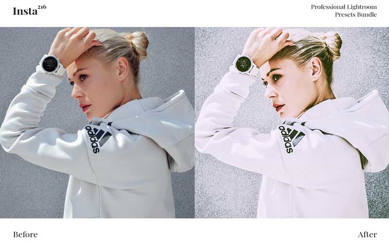 216 Instagram Presets Bundle are the most trendy and various Instagram presets collection. In this pack included: clean, bright, airy, neutral, black and white, HDR, peachy, high/low contrast, vintage, faded, cold, warm and many other presets.