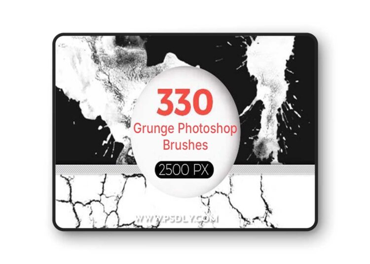 – 330 grunge brushes at a maximum resolution (close to 2,500 pixels)