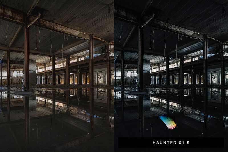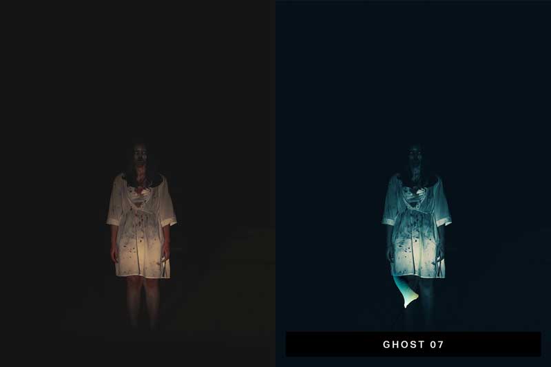 - Ghost (10 Presets) – Turn your photos into a horror scene with blue tint and cinematic tones.