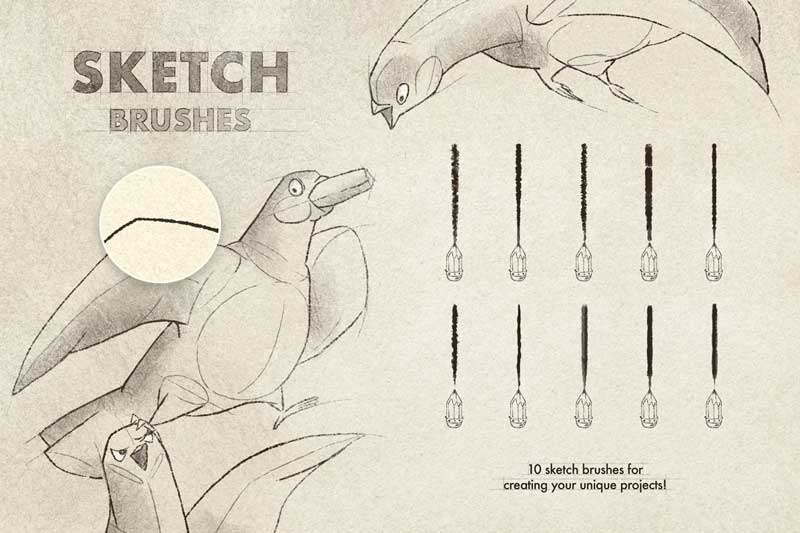 - 10 sketch brushes;