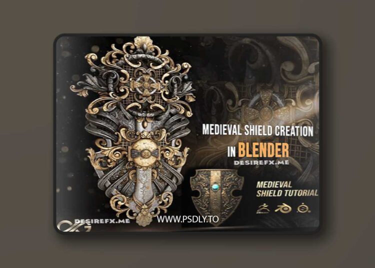 DOWNLOAD LINK: Create a Highly Detailed Shield in Blender – Tutorial Covering Modeling, Texturing, and Rendering, Plus 250 Ornamental Alphas Plus Ornaments Kitbash