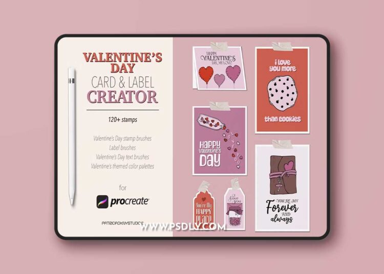 Valentine’s Day card creator set: 120+ Unique Brushes for Procreate