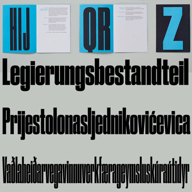 Of the families in the Druk collection, Druk Condensed is the most explicit homage to Willi Fleckhaus. Drawn for the 2011 “Year in Review” issue of Bloomberg Businessweek, Druk Condensed features three widths in the same Super weight.
