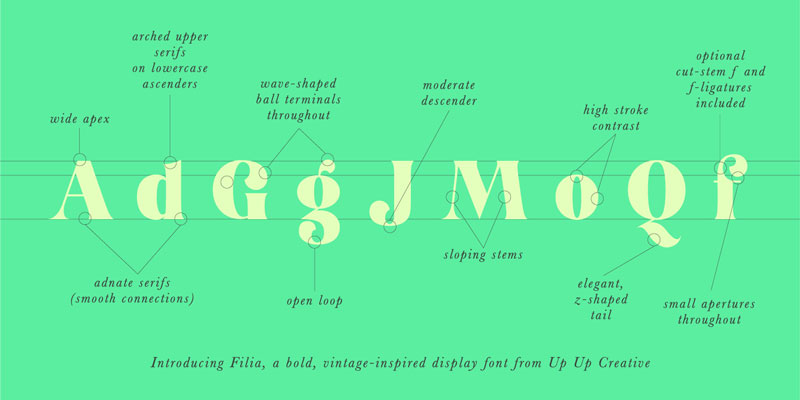 Introducing Filia font family, a vintage-inspired display font with smooth curves and plenty of OpenType features. Filia is perfect for your next editorial, advertising, branding, book, or invitation project.