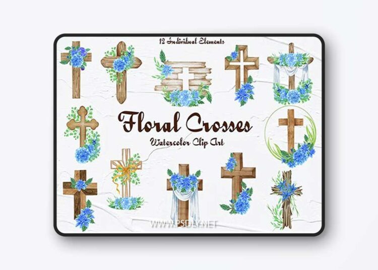 DOWNLOAD LINK: Floral Crosses Watercolor Clipart vol 2