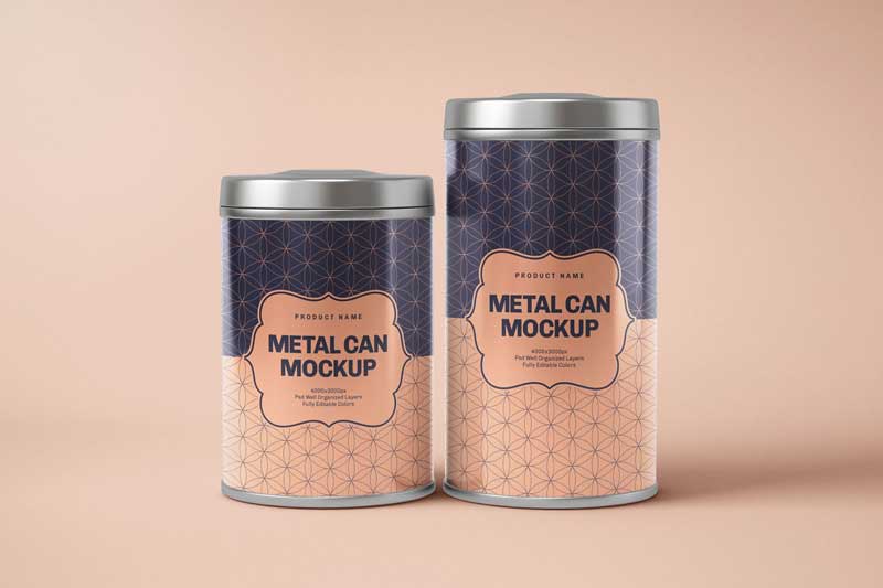 Display your design in a more efficient way on this perfect Glossy Metal Tin Can Box Mockup for packaging designs for tea, coffee, biscuit, candy, chocolate and etc. This mockup pack is a premium model with 20 views, include 20 PSD files well organized. Personalize your tea or other product packaging designs easily through a smart object and change the background to any color.