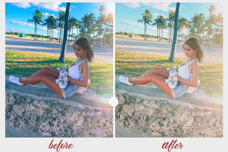 The summer triumph – tan skin, aqua ocean color, water sports, perfect beaches, and sunset Ocean Drive – Miami Presets! Lifestyle, Travel, Portrait pictures with the true summer paradise vibe. Also, checkout 6 Mobile Lightroom Presets Black Fade.