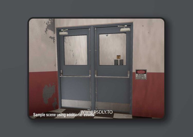 More Doors is a collection of 3 different door types. These include metal swing doors, garage doors, and roll doors. The doors are all animated and are supported by Blueprints to make them easy to integrate into your game level. The swing doors are modeled in an industrial/institutional style. There are 3 types including single, double, and double with center divider. There are 4 window options (none/small/large/ double large) and 4 latch options (simple/deadbolt/push bar/none). Other options include animated door closers and 3 kick plates styles and a stretcher plate. Doors include the frame.
