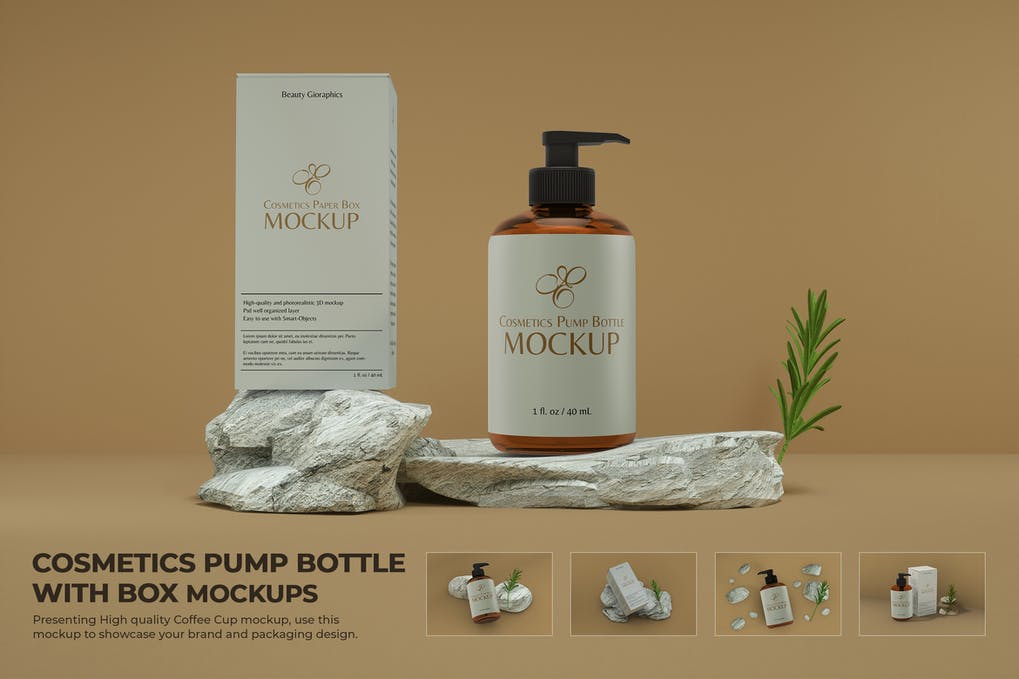Cosmetics Pump Bottle with Box Mockup Scene