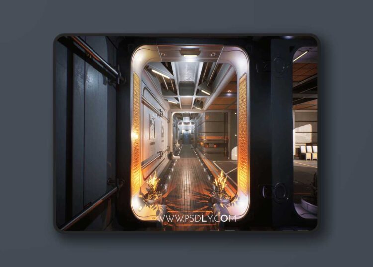 Sci-fi interiors built in the theme of orbital space ship. It contains rooms, corridors, props and decals to create realistic geometrical structures with PBR based materials. The set contains large number of hard surface decals which adds many options for visual variety on the large surfaces.
