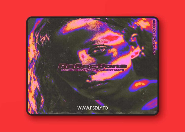 Reflections is a pack of 50 gradient map presets created to add a chrome/reflective effect to your stock photos or renders. Gradient maps come in a .GRD format and can be easily installed and used in just a couple of clicks.
