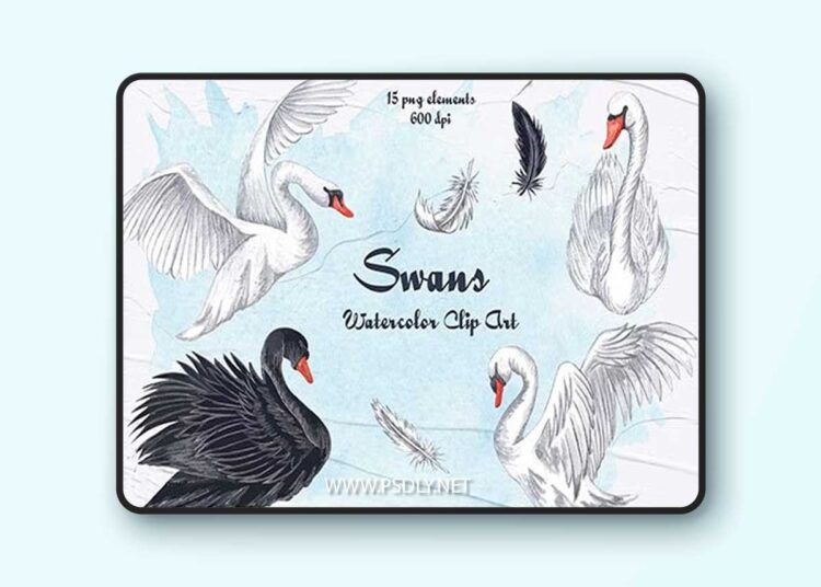DOWNLOAD LINK: Swans Watercolor Clipart