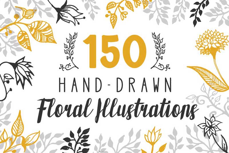 150 Hand-Drawn Floral Illustrations