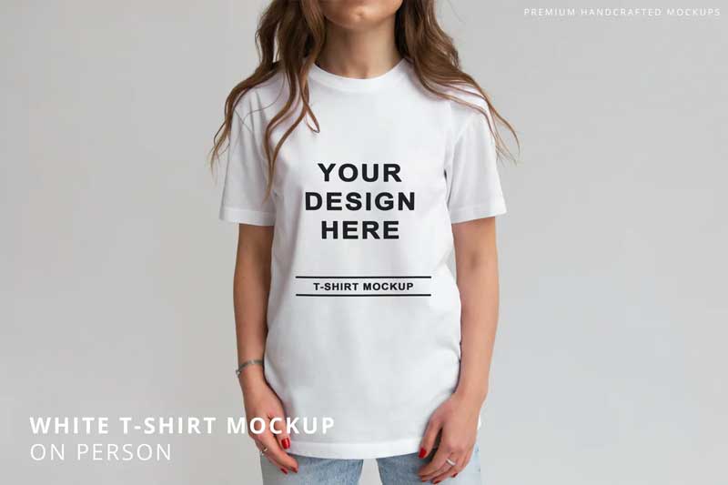 White T-Shirt on Person Mockup Grey Background