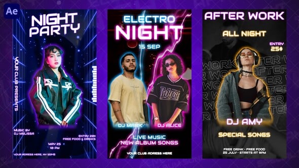 3 Party Invitation social media templates. This reels/stories pack features 3 animated templates, each 15 seconds long. You can easily customize the text, colors, and media to match your project. Everything is well-organized and simple to use. No plugins are required. The project comes in 1080×1920 vertical resolution and includes a step-by-step video tutorial and font links. Perfect for all your social media content. Enjoy it!